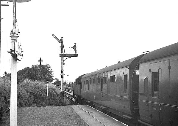 Menai Bridge station became part of the London Midland Region of British Railways on nationalisation in January 1948, and in the late 1950s maroon ‘totem’ signage was installed. The station remained busy into the early 1960s; however the Reshaping of British Railways report of 1963 (the ‘Beeching’ Report) recommended the closure of the line between Caernarfon and Afon Wen and the closure of many intermediate stations on the Chester and Holyhead line, including Menai Bridge. The formal proposal to close Menai Bridge station, and a number of others on this route, was published on 15 October 1964, and on 19 November 1965 Thomas Fraser, the Minister of Transport, gave consent.