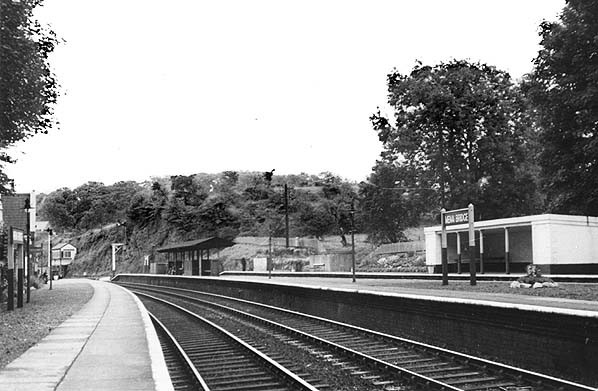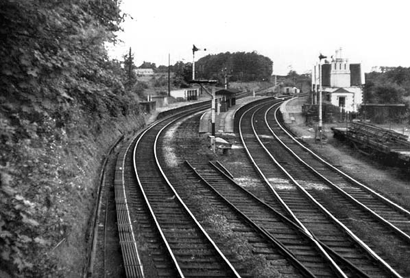 narrow as it was sandwiched between both lines, very close to the fork of the junction, which was remodelled so that trains from the B&CR did not have to carry out any reverse moves. There was no space for substantial buildings so it was provided with a simple timber shelter towards the eastern end. The down B&CR platform was provided with a larger brick shelter located at the middle of the platform.