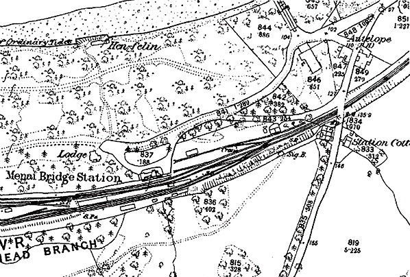 A station had been provided on the Welsh mainland side of the Menai Strait at Britannia Bridge since that section of line had opened on 18 March 1850. It was in a remote spot and was of no use to passengers wishing to travel to Caernarfon. It was for these reasons that the C&HR decided to close Britannia Bridge station and open a new facility at the junction |