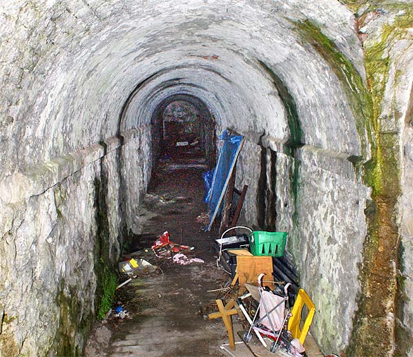 To the east of the main station building, just beyond the eastern end of the platforms, a pedestrian subway ran north-south under the line. The subway was stone-lined and connected to an island platform, which served the down C&HR line (Holyhead direction) and an up (B&CR) line, and to the down B&CR line (Caernarfon) platform. The island platform was quite |