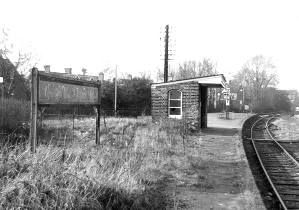 Merton Park Station in February 1975 , looking north west along the Tooting line 'down' platform.