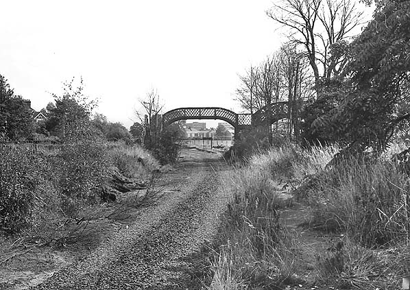Looking south east from Merton Park Station (Tooting line) in August 1975, shortly after the track was lifted. The long footbridge can be seen.
