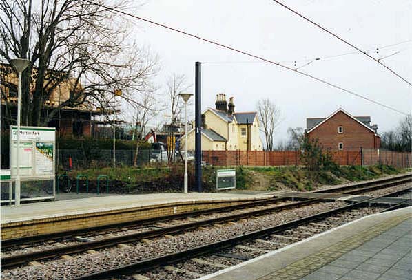 The site of Merton Park Station seen from the new Merton Park tram stop which is sited at the north west end of the old station.