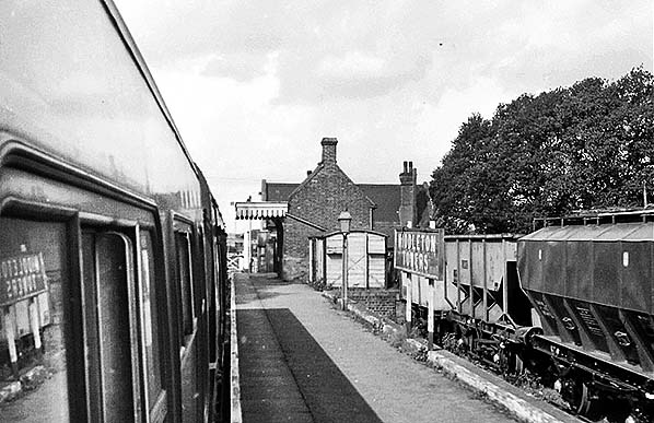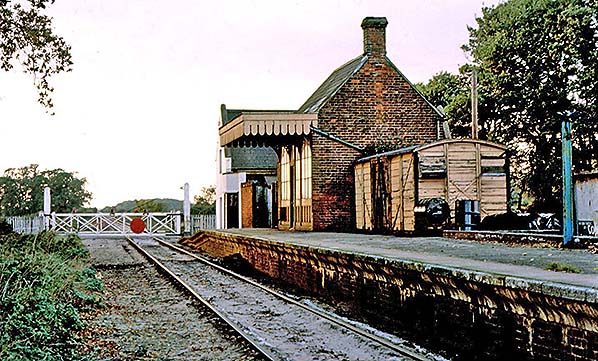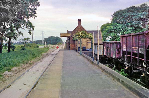 ![]() Middleton Towers station remained outwardly in good order when visited on 23 October 1976. Passenger traffic had ceased running 8 years before. The signal box had gone as had the sidings west of the crossing. The grounded goods van which is seen in many of the pictures appears to be an ex-GER 10 ton ventilated van.