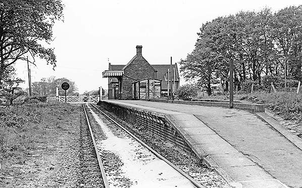 Middleton Towers station looking north-west in May 1984. The edge of the goods dock can be made out behind the platform.