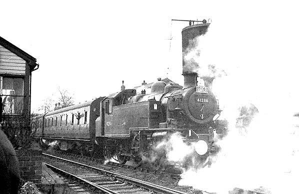 ![]() Station Name: MIDDLEWICH![]() On the 5 February 1966 Middlewich station was visited by the Push and Pull Farewell Rail Tour. The tour which was organised by the LCGB is seen in this looking south-east taking on water at the down platform. The tour was so popular that it also ran on the 12 February 1966.