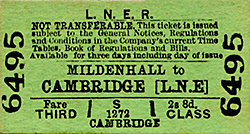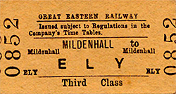 By 1922 the timetable showed just three trains per day operating via Burwell, with the first down train not departing from Cambridge until 10.30am. There was, however, an earlier service to Mildenhall via Newmarket which left Cambridge at 6.47am.