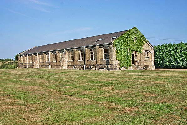 [Source: Darren Kitson] ![]() A more broadside view of the goods shed in June 2006. This is the track side of the building and ivy covers the bricked-up rail entrance. If it were not for the existence of the shed it would be difficult to appreciate a railway once existed at this particular spot. Ahead of the photographer would have been the road passing through the goods shed; the goods loop alongside this, south, face of the shed; the running line; and, a few yards ahead of the camera where the ground rises, the west end of the run-round loop plus its headshunt and spur to the turntable. An idea of the layout in operational days can be gained from the aerial view seen earlier.