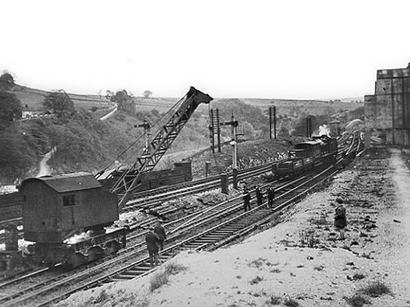 Engineering works on the east side of the viaducts at Millers Dale c.1950.