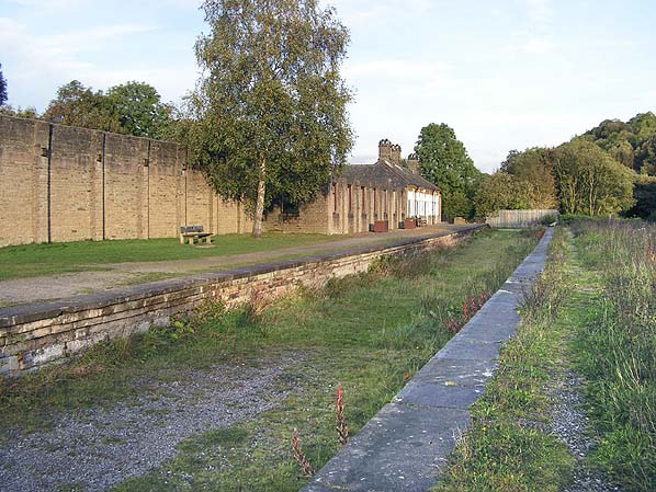 Millers Dale station looking east towards the surviving buildings on platform 1 in October 2009.