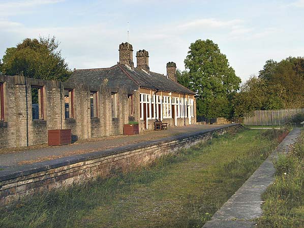 Surviving station buildings at Millers Dale in October 2009. The buildings are now in use as a National Park office and as public toilets.