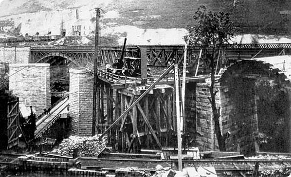 Construction work on the second viaduct at Millers Dale in September 1904. The work was part of a widening of the line at Millers Dale.