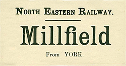 Notes: Between 1876 and 1903 the North Eastern Railway built (or rebuilt) at least 14 of its minor stations to feature overtrack buildings; almost all of these were in Northumberland and Durham, and Millfield was one of them. The station was probably rebuilt in 1890 to provide enlarged booking facilities at what was a busy station - in 1911 87,469 tickets were issued - and ease of access for passengers directly from Hylton Road bridge. The new station was immediately north-west of its predecessor. The earlier station was to lose its platforms, but the station building survived until at least the late 1960s. From the austere brick-built overtrack structure ramps descended to both platforms, and shelters were placed, facing each other, a little to the north-west of the ramp ends. Immediately north-east of the down platform was a siding serving a coal depot; however the bulk of the goods facilities remained south-east of Hylton Road, south of the earlier station, where (as shown on an OS plan of 1919) there were seven sidings and a crane (five-ton) on the down side of the passenger tracks. NER records of 1913 state that flour and bran, ale and ale empties and glass were the principal goods handled. The 1904 RCH Hand-book of stations notes that nearby sidings served Bishopwearmouth Steam Mills; Chapman’s Steam Bakery; Dowson’s Slate Yard; Greener’s Glass Works; Jobling’s Cask Yard; Millfield Landsale; and West End Landsale Depôts.