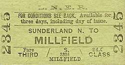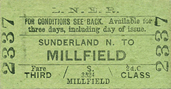 From the late nineteenth century road trams began to compete with the railways, and a tram route followed Hylton Road past the entrance to Millfield station. From 1900 Sunderland’s tram network was electrified. As on Tyneside and in numerous other urban areas the cheap and frequent trams services, and later motor buses, enticed passengers from ‘inner city’ railway stations: Millfield was such a station. Whereas on Tyneside the suburban routes north of the river were electrified by the NER in 1904 (followed much later by the South Shields route by the LNER in 1938) to hold their own against the trams, this was not attempted in Sunderland until the arrival of Metro trams in 2002. On Tyneside the regularity and frequency of suburban trains was also enhanced, but the commuter line train service between Sunderland and Durham changed little between 1896 and 1920.