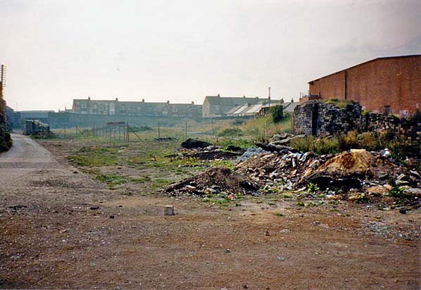 This extensive area of derelict land was Millfield goods yard which adjoined the first passenger station. The view from 1990 is north-westwards towards Hylton Road whose bridge over the former Sunderland to Penshaw line can be seen in the distance. Houses would later be built on the right hand