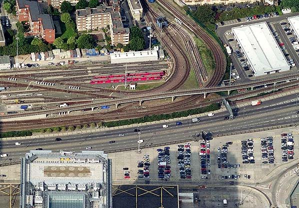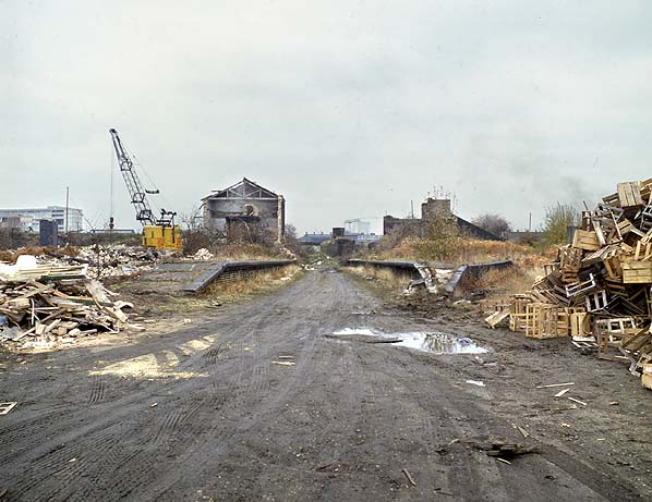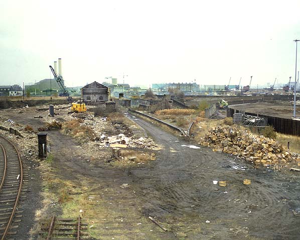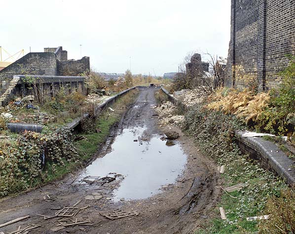 ![]() Looking east from Millwall Junction Station in November 1982 Photo