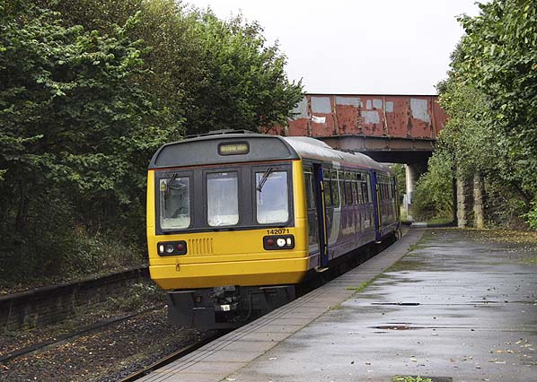![]() A class 142 Pacer DMU bound for Manchester Victoria at Milnrow station in September 2009.