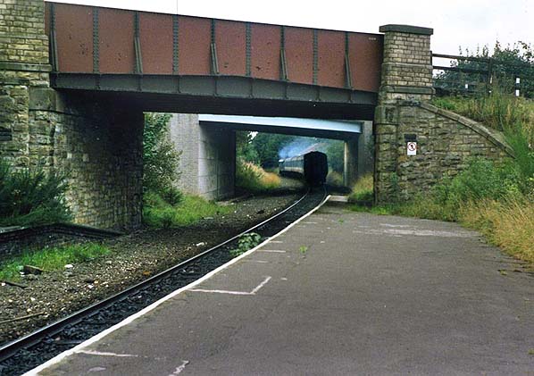 A Blackpool to Rochdale train passing through Milnrow station in September 1990