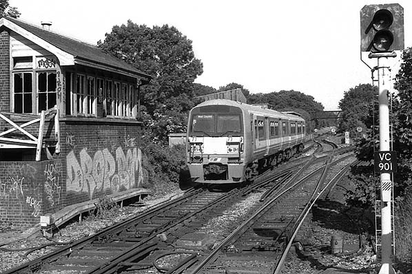 West Croydon train leaving Mitcham Junction station on 31st May 1997, the last day of public service on the Wimbledon - West Croydon line.