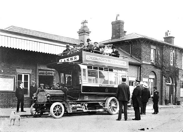 ![]() Station Name: MOLD![]() In 1906 the LNWR operated a bus service from Mold Station to outlying villages in order to provide passengers with a connection into its train services. This view shows the bus outside of Mold Stations main entrance. Copyright photo from John Alsop collection ![]()