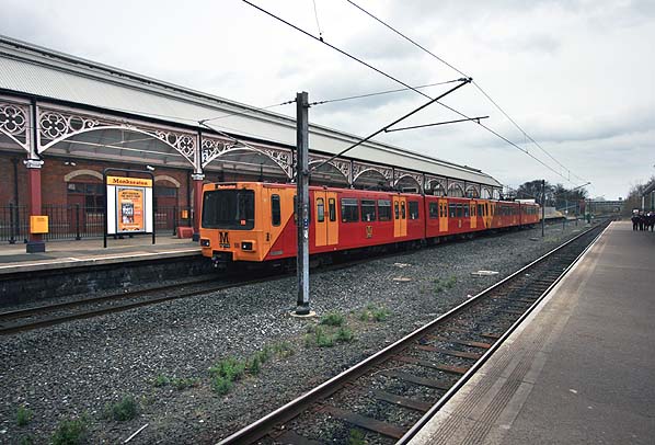 A Metro train stands at the down platform at Monkseaton station in March 2009.