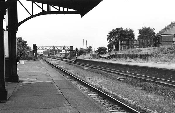 Looking east from the down platform of Monkseaton station c1973. By this time the lawns between the tracks had ceased to be maintained and were removed.