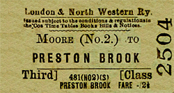 On 1 January 1923 Moore became part of the London Midland & Scottish Railway (LMS). The LMS timetable for the summer of 1932 showed 7 up and 10 down trains Monday-to-Saturday as shown in the table below.