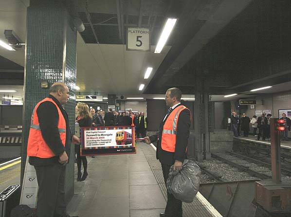 Waiting for the last train at Moorgate Station on 20th March 2009, the last day of public service
