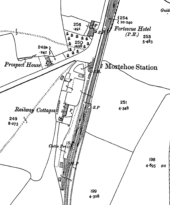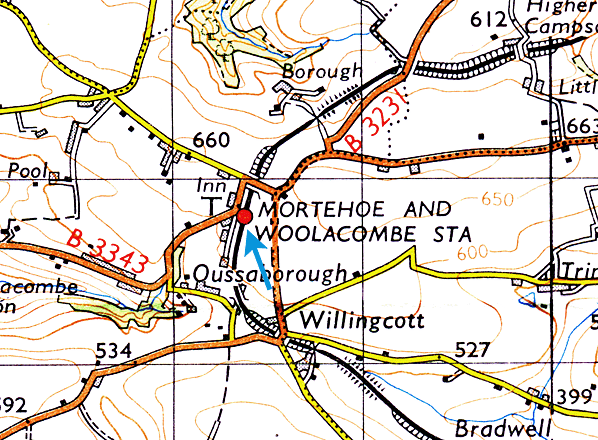 Notes: The station was opened in 1874, with the line, and served the villages of Mortehoe and Woolacombe. It was known as Morthoe until 13 May 1902. The station was immortalised in 1964 in the song Slow Train by Flanders and Swann. It was closed to passengers in October 1970 when the branch closed.