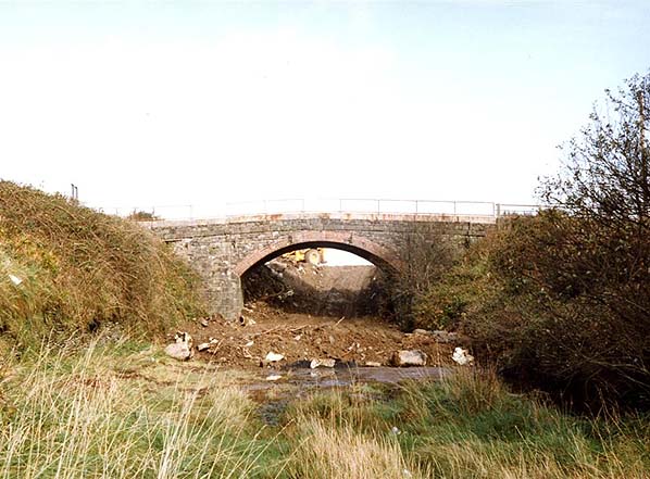 Looking north from Mortehoe & Woolacombe Station towards Station Road bridge in 1986