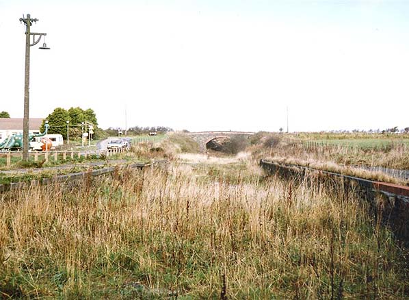 Looking north from Mortehoe & Woolacombe Station towards Station Road bridge in 1986