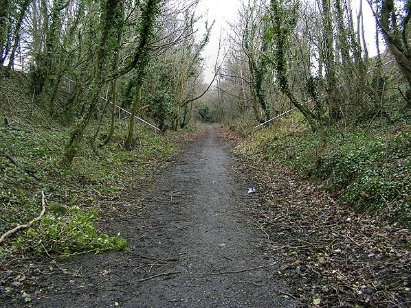 ![]() Moss and Pentre station looking south west in February 2011. The former up platform can be seen to the right. When the station was open a footbridge spanned the line at the point where