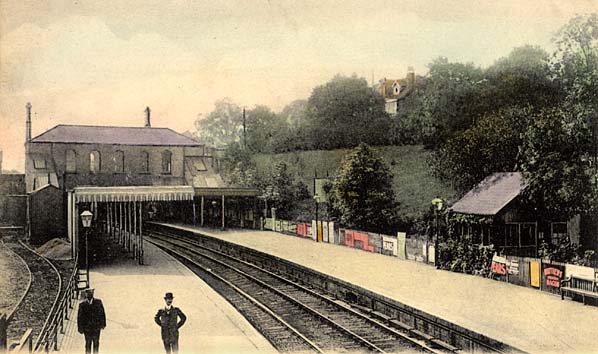 Notes: Muswell Hill Station had two side platforms and a substantial brick street-level building on the north side of Muswell Hill at the back of a small forecourt. With the coming of residential development around the station in the early twentieth century a second entrance to the station was opened along a footpath from Duke's Avenue for use at peak times. A lattice iron footbridge spanning the platforms was also constructed close to this entrance.