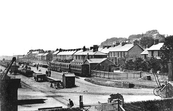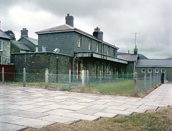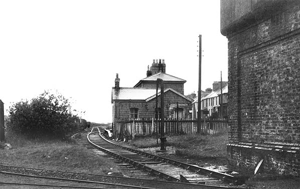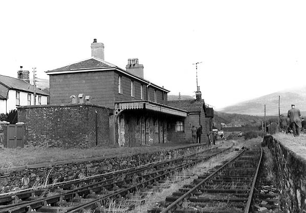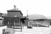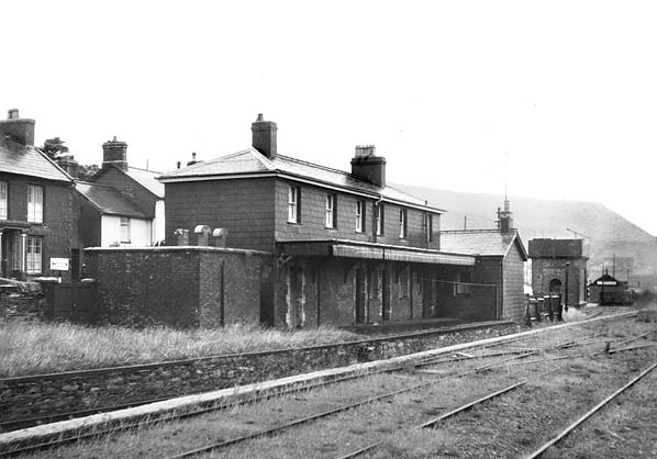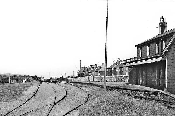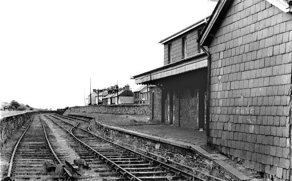 village of this name. The station building wasa substantial two-storey structure, austere but well-proportioned and possessing some dignity. Slates were employed not only for the hipped roof but also as cladding on the walls. Beneath the flat awning with its saw-tooth valance, which extended the length of the building’s platform elevation, the wall was of red brick with yellow brick used for decoration around the door and window openings. There was a single platform, and the line continued for only a short distance to the east beyond it to a point where there was a watering facility. The station was provided with a loop to allow locomotives to run around the trains. In the early days there was also a turntable but it had been removed by the early years of the twentieth century.