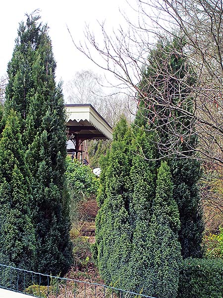 ![]() Station Name: NARBOROUGH & PENTNEYLooking north, in the Lynn direction, from the road from the site of the levl crossing in March 2018. The platform canopy was intact and gardens occupied the track-bed.