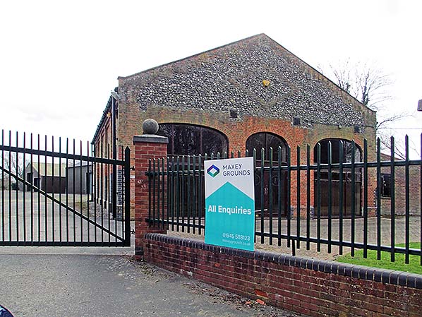 ![]() Station Name: NARBOROUGH & PENTNEYThe imposing former goods shed at Narborough seen in March 2018. A siding projected from the right-hand arched doorway towards the road. The newer buildings in the background are on land previously occupied by sidings and cattle pens. The site was for sale for £525,000 at the date of the visit and described as:- Former Victorian Railway brick and flint Goods Shed now converted into Offices. Former Builders Yard, Offices and Units available For Sale as a whole with Vacant Possession. The property is situated between King's Lynn and Swaffham. Located on Pentney Road less than a mile from the A47 Great Yarmouth to Birmingham main road. The property comprises Office Block, Cold Store and 2 Industrial Units all sitting on approximately 2.1 Acres (STMS) with gated entrance and palisade fencing around whole property.