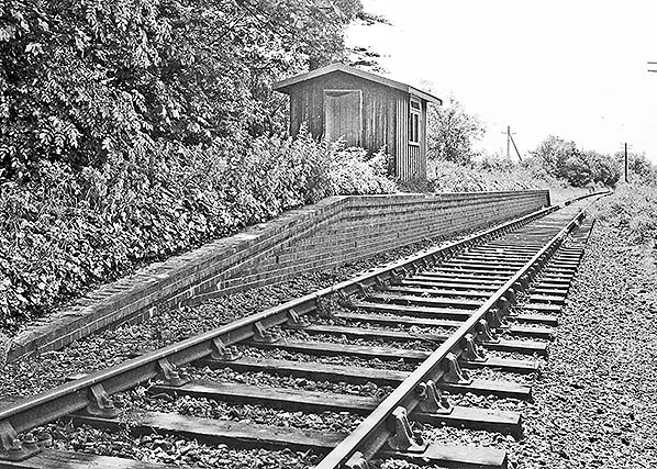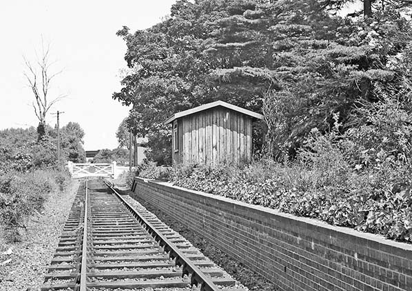 Photo from John Mann collection ![]() Nast Hyde Halt looking northeast c1970 a few months after the track was lifted in 1969. The ballast has yet to be lifted. The waiting room has been demolished but the level crossing gates remain in place.