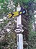 Photo by Richard Francis ![]() As part of the restoration a very distressed totem sign was fixed to a tree at the halt. Nobe of the stations on this lines ever had totems, the line closed to passengers in 1951, several years before totems were first used by BR.