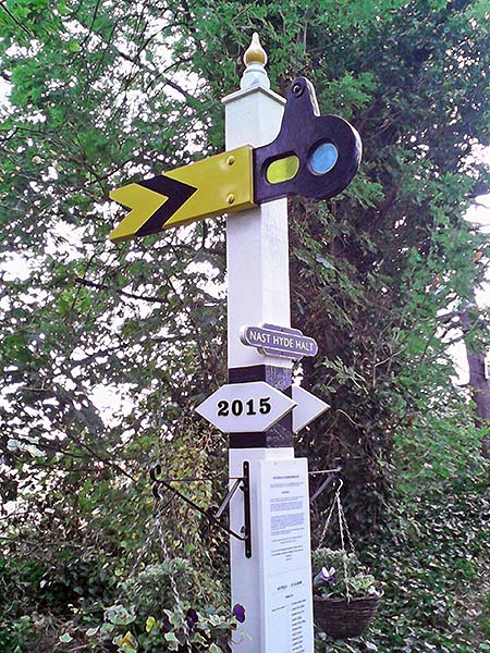 Replica signal and totem close to the partially restored Nast Hyde Halt in 2015.