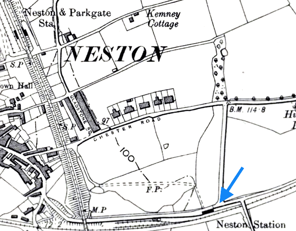 Notes: Neston South station was situated on the Birkenhead Joint Railway (BJR) Hooton and Parkgate branch which opened on 1 October 1866. The BJR was a joint railway of the London & North Western Railway (LNWR) and the Great Western Railway (GWR). Hooton was located on the BJR Birkenhead - Chester main line and there was a colliery at Parkgate (Neston Colliery) which the BJR wanted to serve. The Parkgate branch passed through a rural area but three stations were provided to serve areas of population (the other two being Hadlow Road and Parkgate).