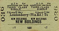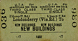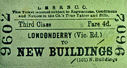 In December 1921 (following the Irish War of Independence) the island of Ireland was partitioned into two separate countries, The Irish Free State and Northern Ireland. Most of the CDR network was located within the Irish Free State but the NCC line through New Buildings was located wholly within Northern Ireland.
