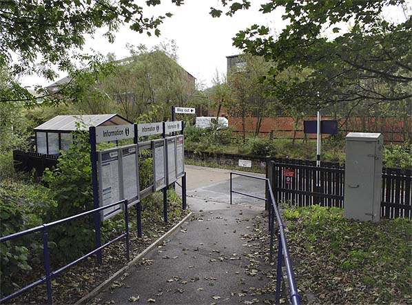 ![]() New Hey station entrance from Huddersfield Road in September 2009. Photo by David Warby from his Lost Lines web site