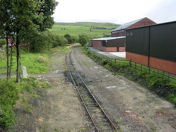 ![]() Looking south east at the site of New Hey Station in late August 2010. Apart from the single track the former LYR cotton warehouse was still standing and can be seen to the right. Photo by Paul Wright
