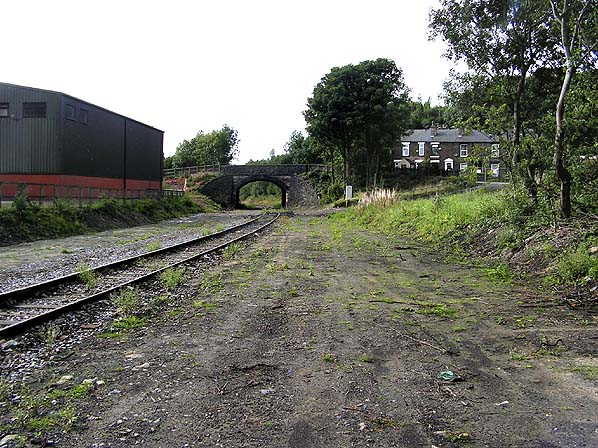 ![]() Llooking west along the site of the former up platform at New Hey station in late August 2010. Photo by Paul Wright