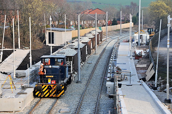 ![]() The site of New Hey station during construction of a Metrolink tram stop in March 2012. Photo by Ian Furness
