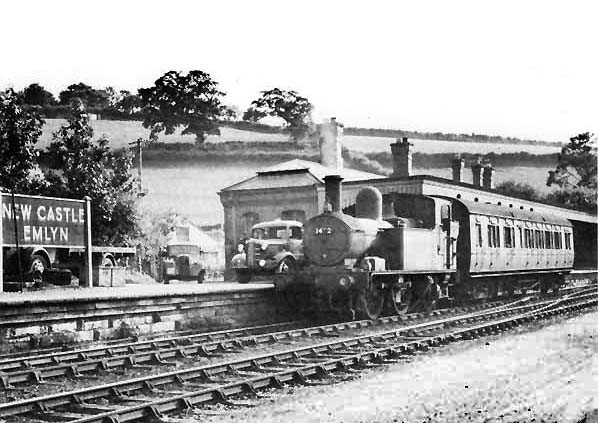 ![]() Station Name: NEWCASTLE EMLYN![]() A passenger train for Carmarthen waits for departure at Newcastle Emlyn c.1950. 1472 was built by the GWR at Swindon works in April 1936. An auto-fitted Collett 0-4-2 tank, it carried the number 4877 until April 1936, when it was renumbered 1472, this it carried until withdrawal from 85B, Gloucester Horton Road shed in November 1964, It was scrapped by Cashmores of Newport in February 1965. Photo by R C Riley ![]()