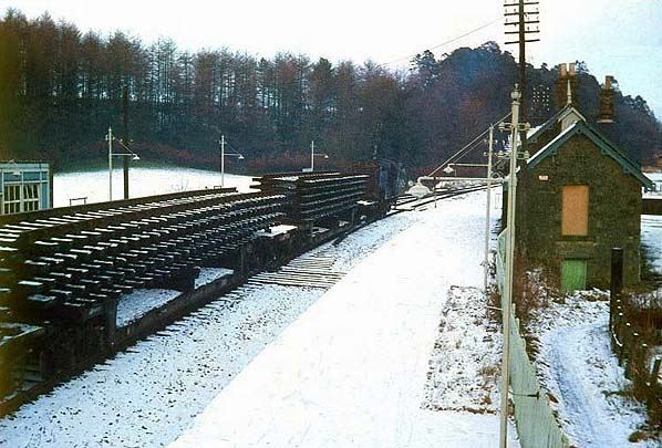 A track recovery train at Newcastleton station n the winter of 1969.