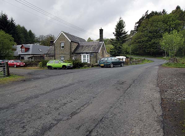 ![]() Site of the Langholm Road level crossing at Newcastleton in May 2011. The station master's house is seen on the left; the station was to the right.