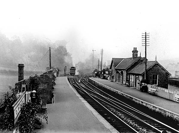 Newcastleton station looking north from the footbridge c.1930s. A class J31 is backing into the station.