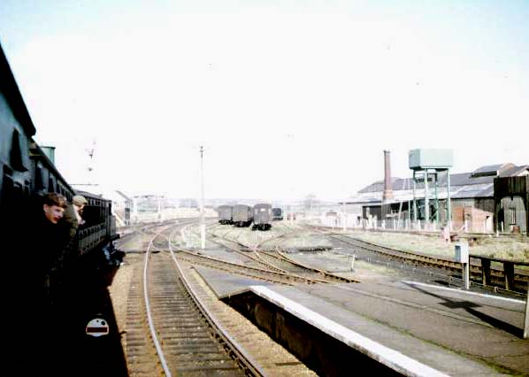 Newport Station on 19th February 1966 - two days before closure. The marshaling yard can be seen beyond the station. Photo by Robert Bridger (from 30937 Photographic Group web site)